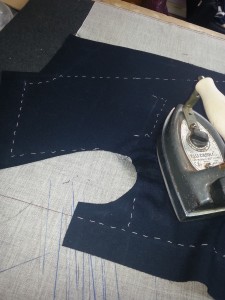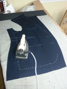 Una vez terminado de planchar el delantero y las entretelas procederemos a hilvanar los delanteros a la entretela.