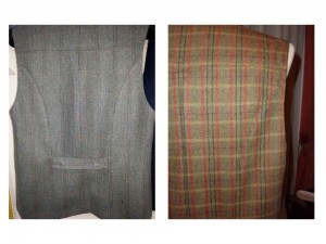 La particularidad de este chaleco reside en hacer casar todas estas lineas con todas las costuras. Si tejido hubiese sido liso sería más fácil de hacer pero por el contrario habría perdido toda la gracia que finalmente tiene. En esta imagen podemos hacer una comparativa de como queda un chaleco cuando todos los cuadros y los elementos del diseño del tejido casan y como quedaría el chaleco si no se hiciese este juego.